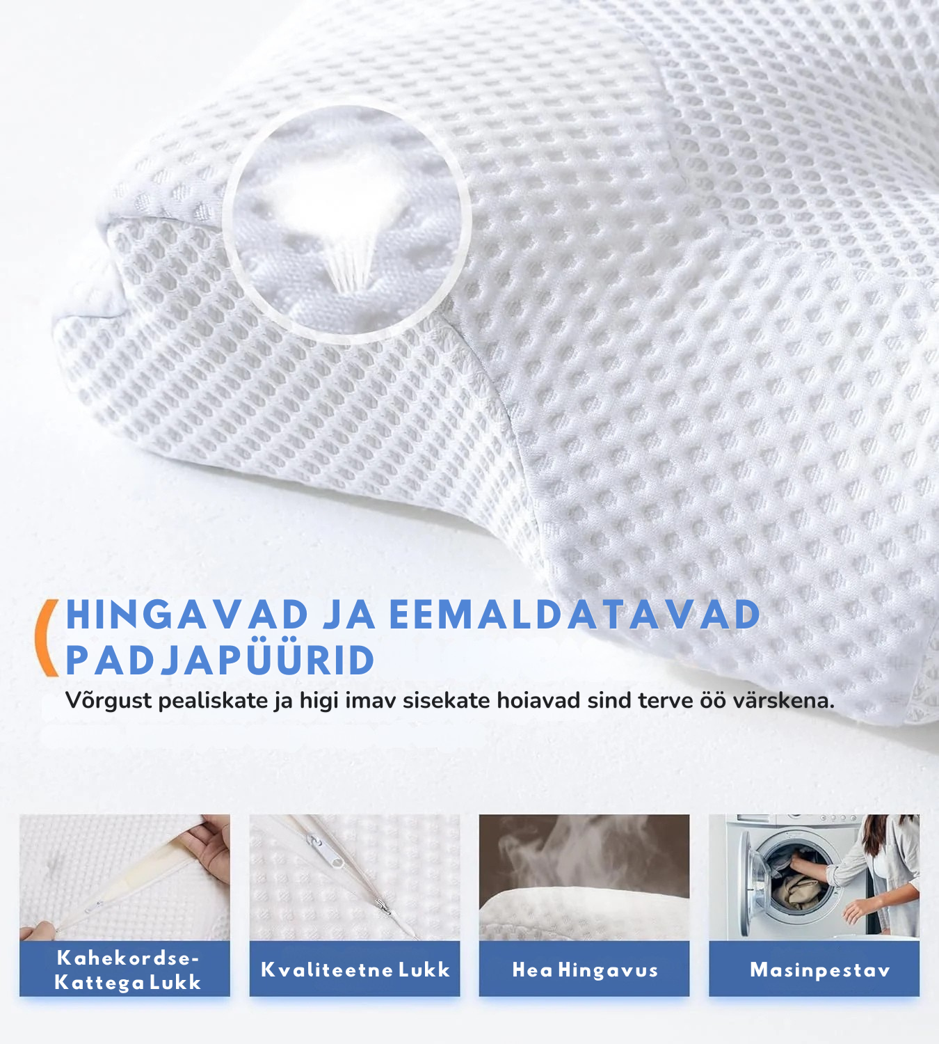 Selle ainulaadne hingav kangas tagab kiire kuivamise pärast pesu. Lihtsalt ava lukk, pese kate ja naudi igal ööl puhast ning mugavat und.